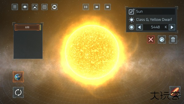 3.然后再点击左下角星球按钮,选择太阳就可以了。