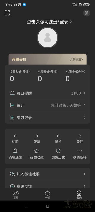 4、在我的这里,用户可以查看冥想的时长、统计、练习记录等,还有每日提醒等。