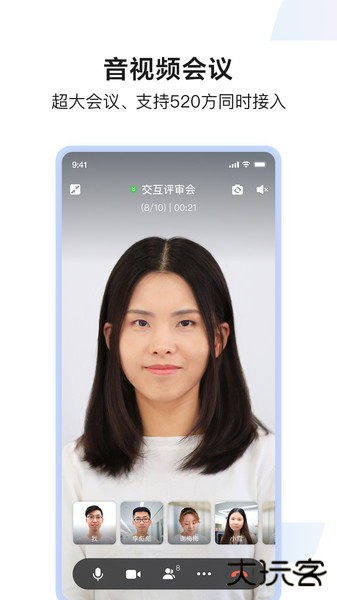 1、智能音视频会议:支持520方高清视频会议接入,提供屏幕共享、语音通话及外部人员浏览器快速入会功能,适用于跨国会议与客户沟通。
