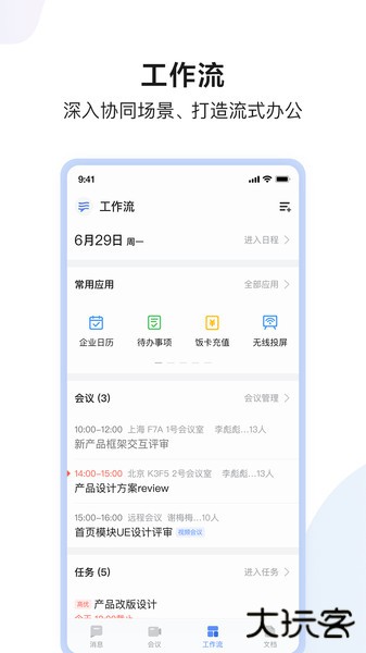 2、智能日程管理:自动提醒会议安排,可查看同事空闲时间并预约会议,避免重复沟通。
