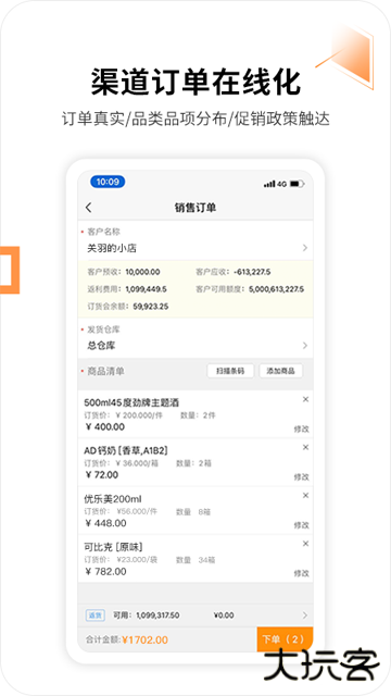 4、直营订单显示销量目标与库存数据,辅助决策。