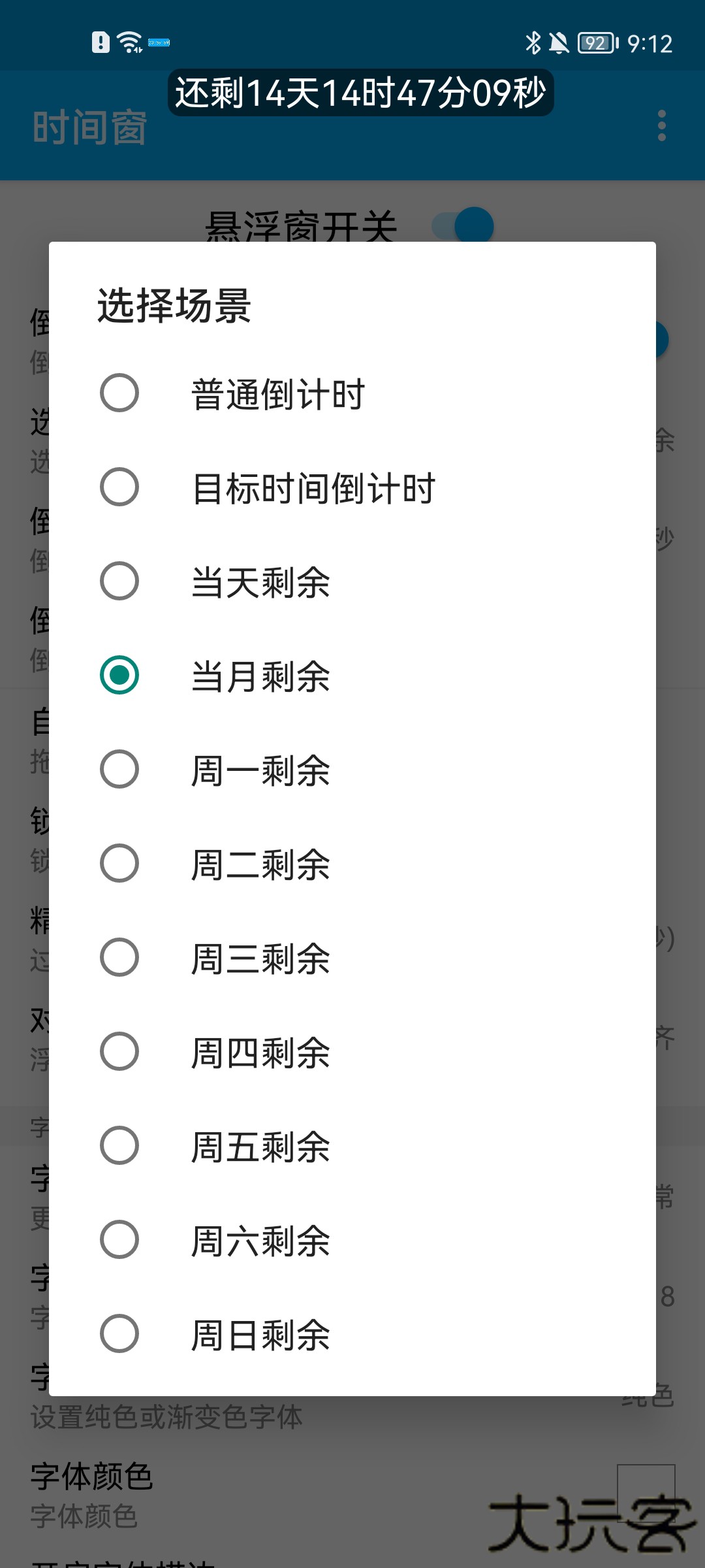 5、时间浮窗效果全部由你自定义,爱自己风格的时间窗。