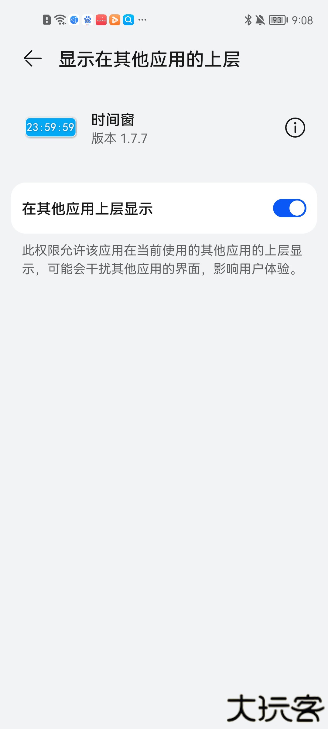 1、首先打开时间窗桌面app最新版,点击允许在其他应用层显示