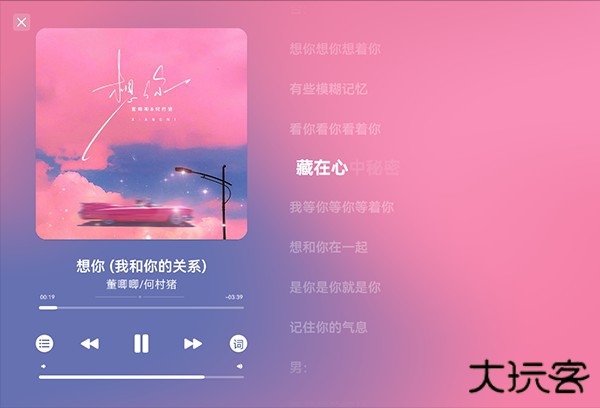 3、音乐播放界面也很精美,看起来就很舒适,歌词、封面等基础功能都有。