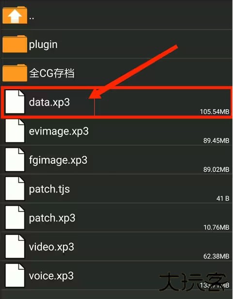 6、在模拟器中找到刚刚修改好的资源,点击【data.xp3】选项就可以开始游戏
