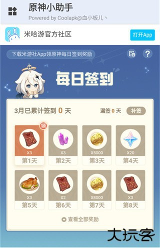 4、每日签到:与米游社每日签到互通,但是更加方便,直接点击即可领取至玩家账号