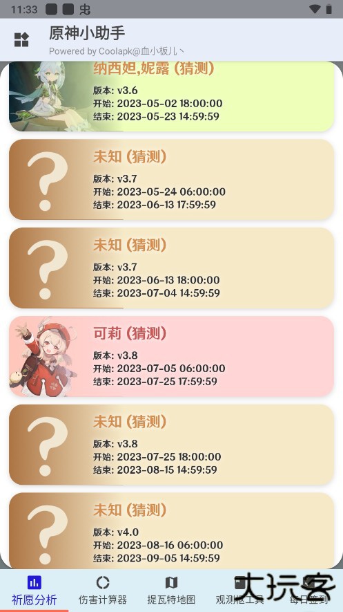 1、祈愿分析:为用户提供全面的抽卡分析,多种分析方式,看看自己到底是欧皇还是非酋