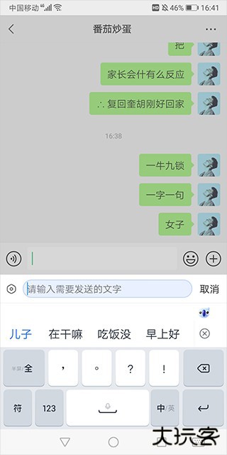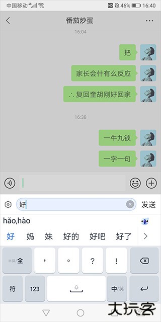 5、然后发出去时就会自动将这个“好”字拆分成“女”和“子”。