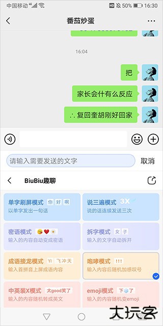 3、接着显示页面就代表已经完成了biubiu键盘的设置,并开启了biubiu聊天神器的功能。