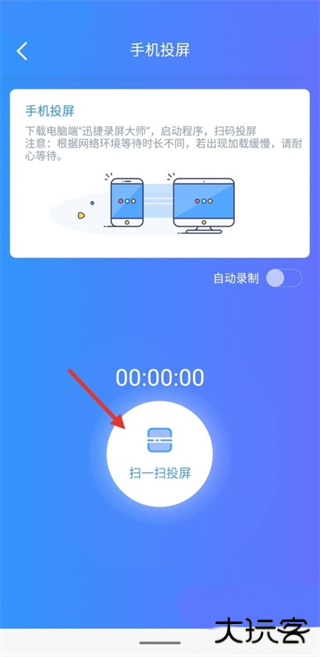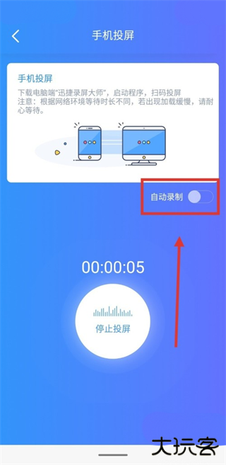 4、投屏成功后,根据需求选择是否开启【自带录制】功能。