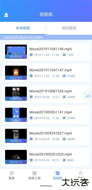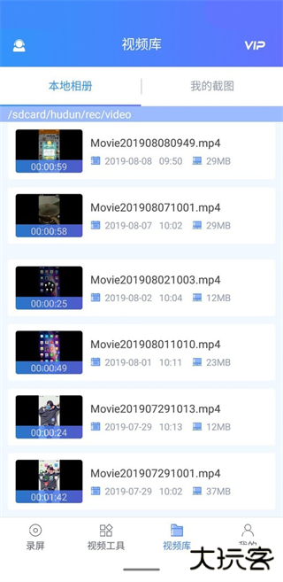 5、返回主界面,点击底部的【视频库】即可查看和管理所有录制的视频文件。