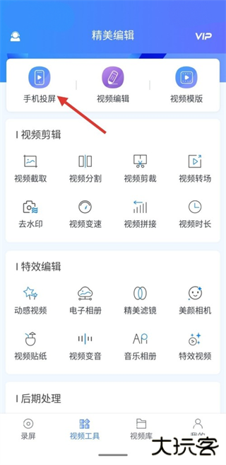 2、进入【精美剪辑】页面后,找到并点击【手机投屏】。