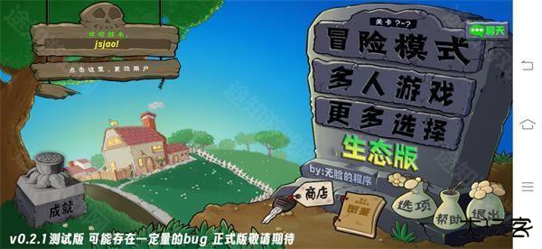 1、下载安装植物大战僵尸生态版完成后,运行游戏进入到主界面,点击冒险模式。