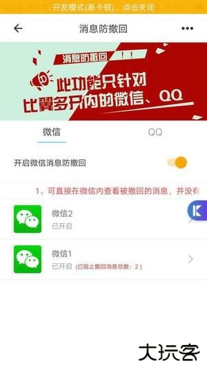 注:此功能只支持多开上的微信或者QQ,若刚开始登录显示消息已撤回但看不到被撤回内容,属于正常现象,因这些消息是此次登陆之前的消息。