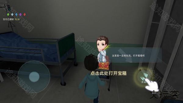 3、在逃亡的大门上,需要镶满6个宝石才能打开,为此你需要在荒废的医院里,寻找宝箱并破解宝箱,带着里面的宝石,前往逃生大门