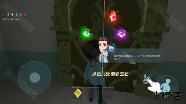 4、到了大门以后,点击此处镶嵌宝石,逃生完成!