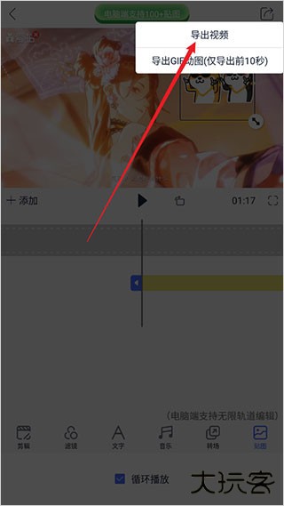 11、最后点击右上角的导出图标,再选择导出视频即可完成导出。
