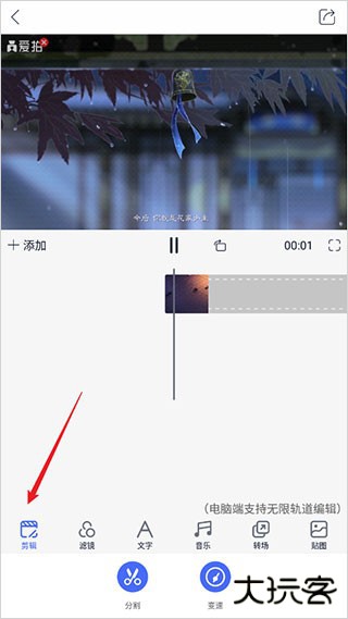 5、点击【剪辑】,可以对视频进行分割、变速等操作。