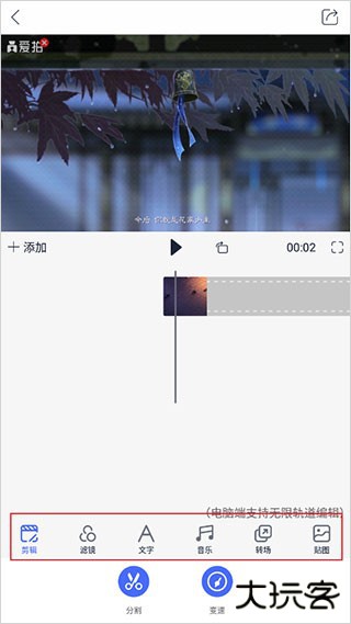 4、选中该素材并点击√,即可在底下各种功能进行编辑。