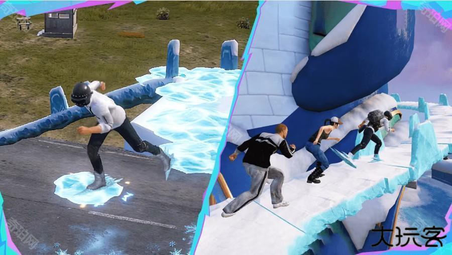 ✧装备后获得道具技能,点击使用技能后会让使用者跃起一定高度,然后使用者可以控制移动方向在身后实时生成由移动路径生成的冰面轨道,其他玩家可以上到冰面轨道来进行移动。