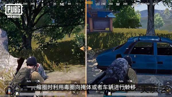 10、进入后期时,生存压力大大增加,此时可利用毒圈与掩体或载具之间的转换来降低暴露风险。