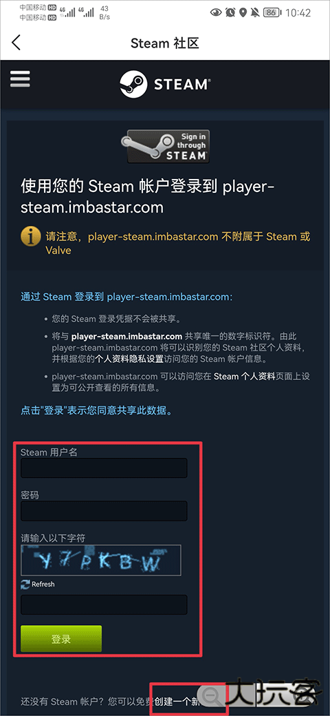 4、系统将跳转至 Steam 社区登录页面,请准确输入您的 Steam 用户名、密码及图形验证码。