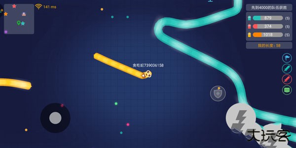 在熟悉了基本玩法后,就可以进行团战模式的玩法了。在团战模式中,小蛇的头部撞到同队(同色)的队友不会死亡。