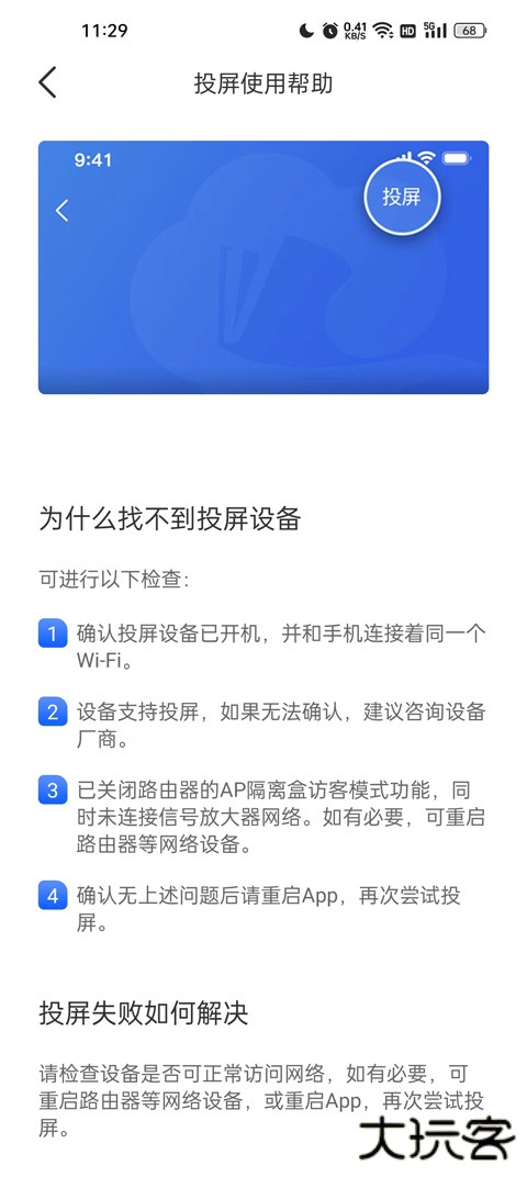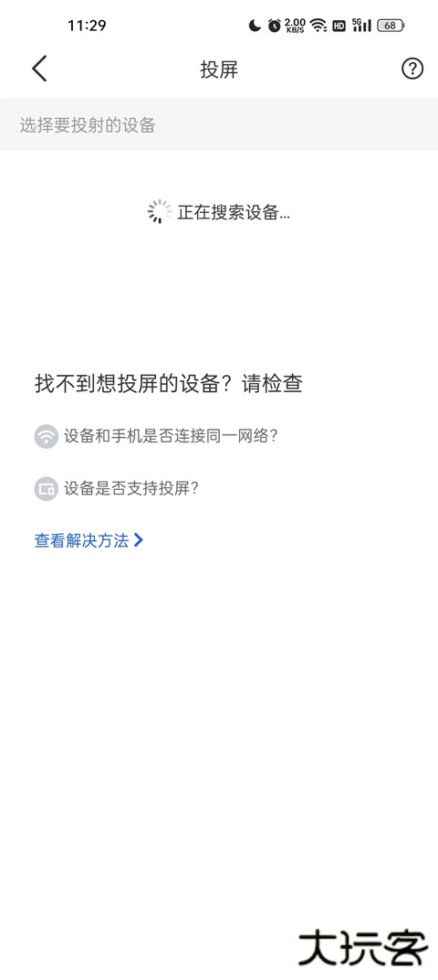 1、确保投屏设备已开机,并且手机和投屏设备是连接到同一个wifi;