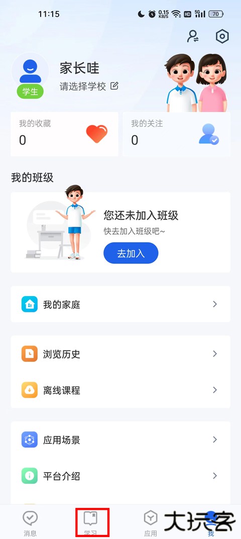 2、然后用户需要先打开自己需要投屏的内容,点击来到学习页面;