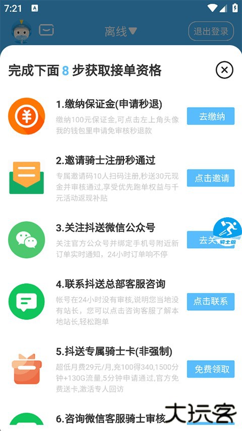 2、此刻将会弹出完成以下8步获取接单资格;
