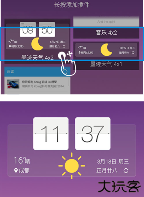 3、选择某种尺寸的墨迹天气小插件,长按拖动到桌面上即可