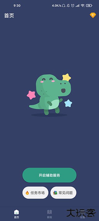 2、之后在首页能够看到开启辅助、应用市场等功能。