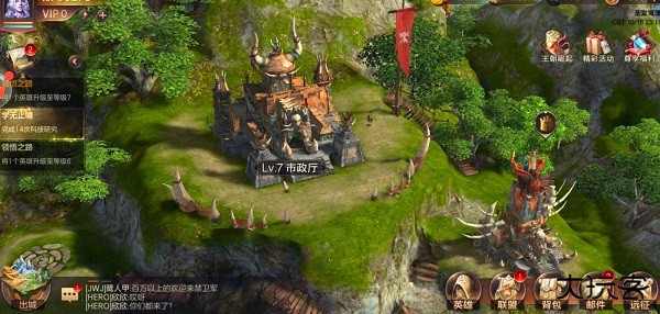 2、主城建设:建设和发展自己的主城,提升资源生产和英雄实力。
