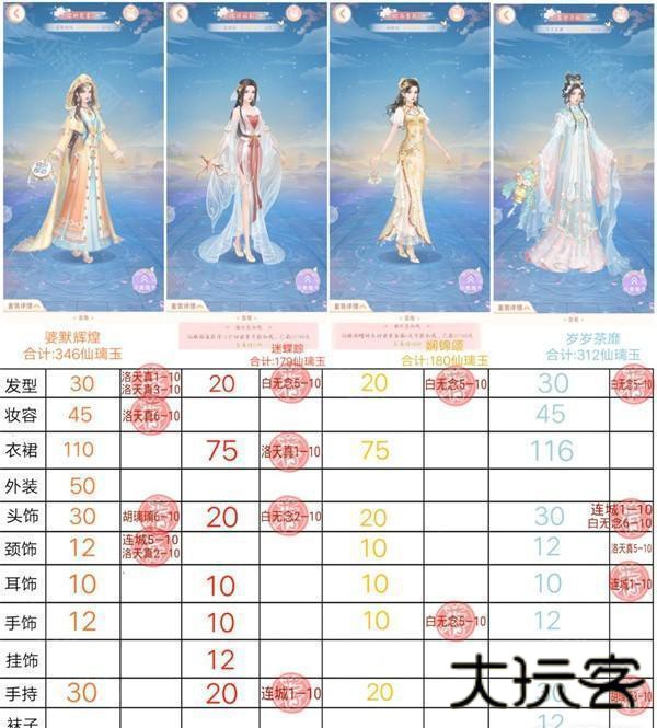 把价格整理了一遍,统计了一下约会最后一话可以用到的。【现版本约会最高为六章,天品居服饰第一期。】这就是繁花似锦天品居全系列的获取攻略了,其实服装还是很精美的,可以考虑入手,因为要氪金,所以玩家们可以量力而行。