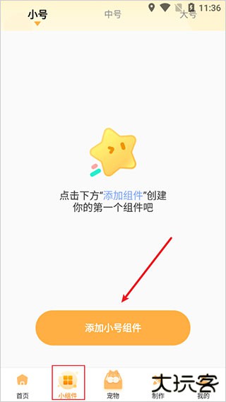 1、打开软件后,点击小组件,再点击添加小号组件。