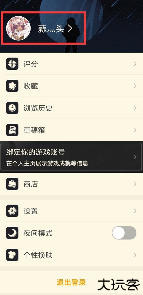 2、点击你的头像和用户名的区域进入个人信息页面