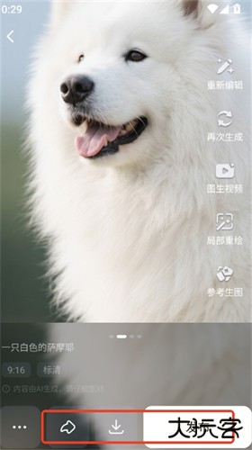 4,图片生成完毕后可以转发下载与发布,支持编辑与再次生成