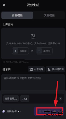 【一键智能创作】输入简要内容,即可生成带字幕、音乐与画面的完整视频。