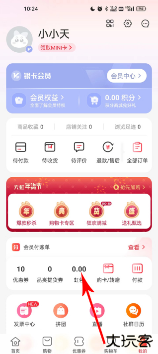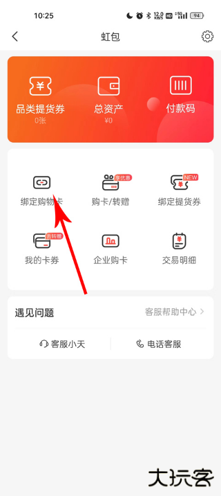 4、进入到虹包之后,选择绑定购物卡进入;
