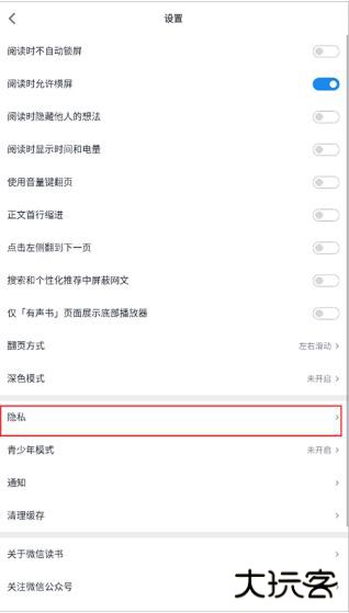 3、在隐私界面点击“私密阅读”右侧的开关即可进行设置了。