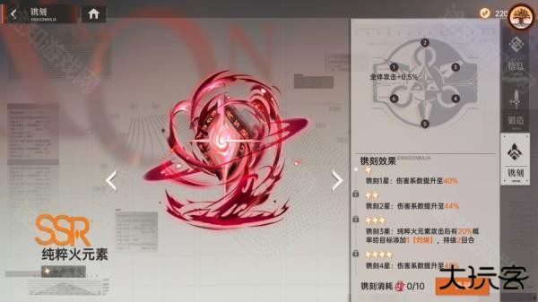 2、镌刻需要消耗同名炼金武器碎片,激活当前星级下所有节点自动提升星级。
