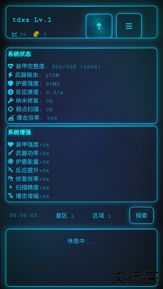 3.游戏主界面将持续展示玩家战舰的实时状态。准备就绪后,点击界面底部显眼的探索按钮即可正式启程,开启探索之旅。
