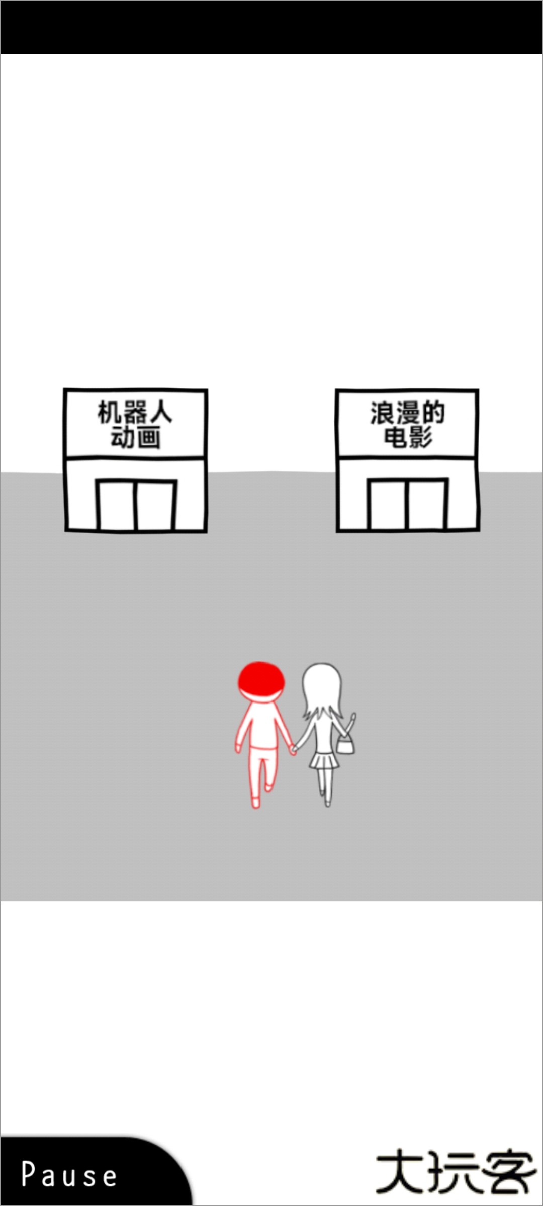 4、第二关卡为情商测试环节:需在「机器人动画」与「浪漫影片」中为虚拟女友选择观影内容。