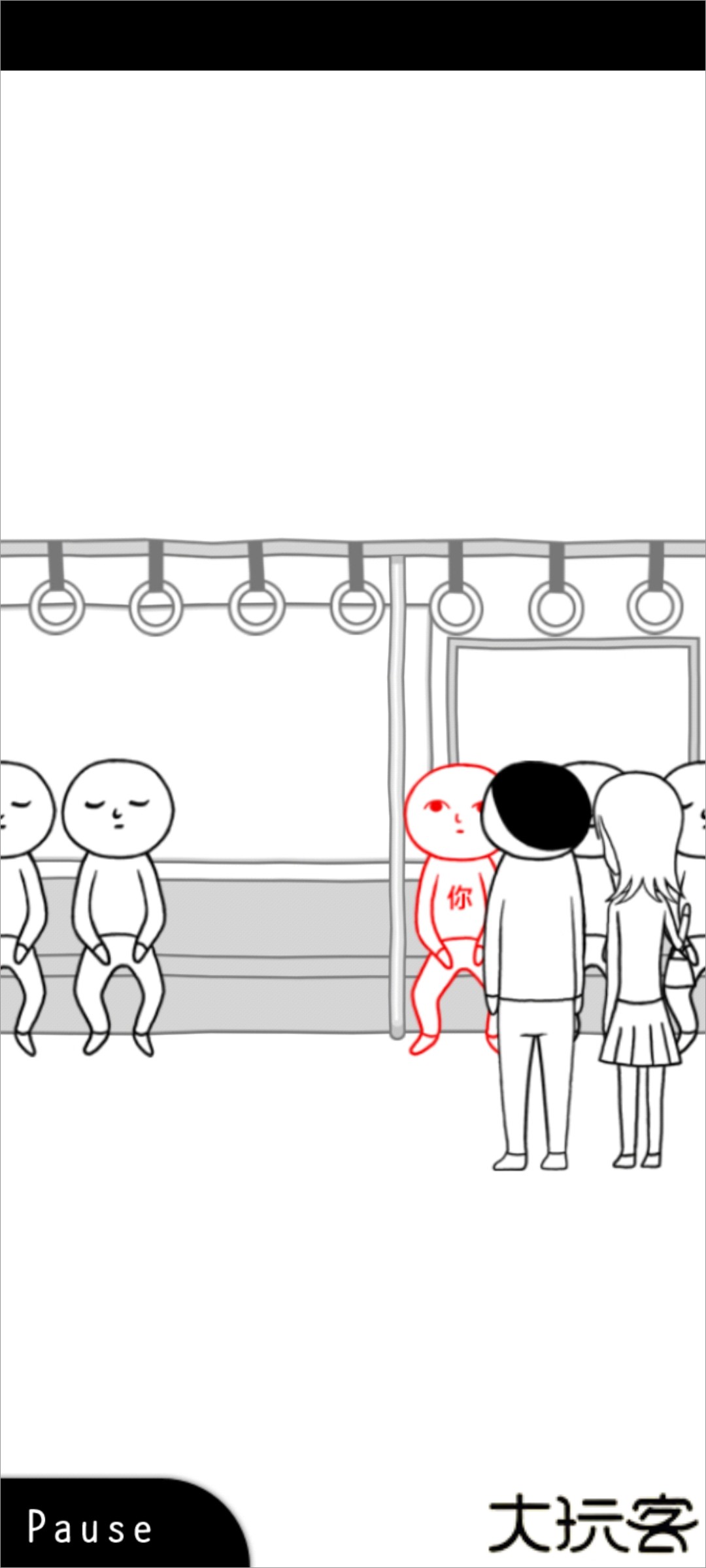 3、首关情境设定于公共交通工具内,玩家需控制角色向左移动两个单位距离,为通行者预留座位空间。