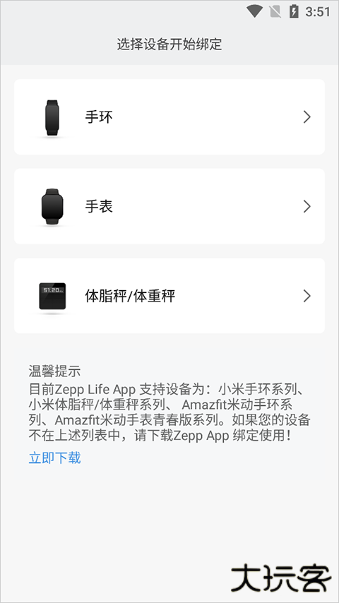 2、在添加设备页面,点击【手环】