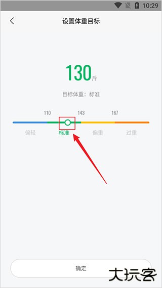 4、移动滚动条,选择目标体重;