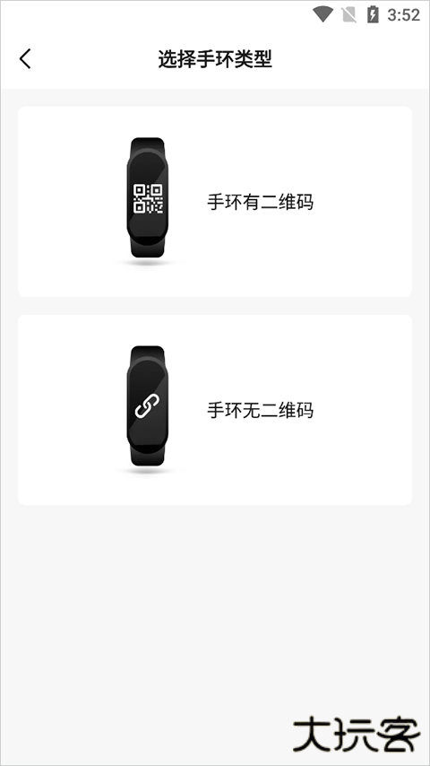 3、在选择手环页面,点击【手环有二维码】