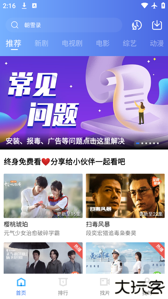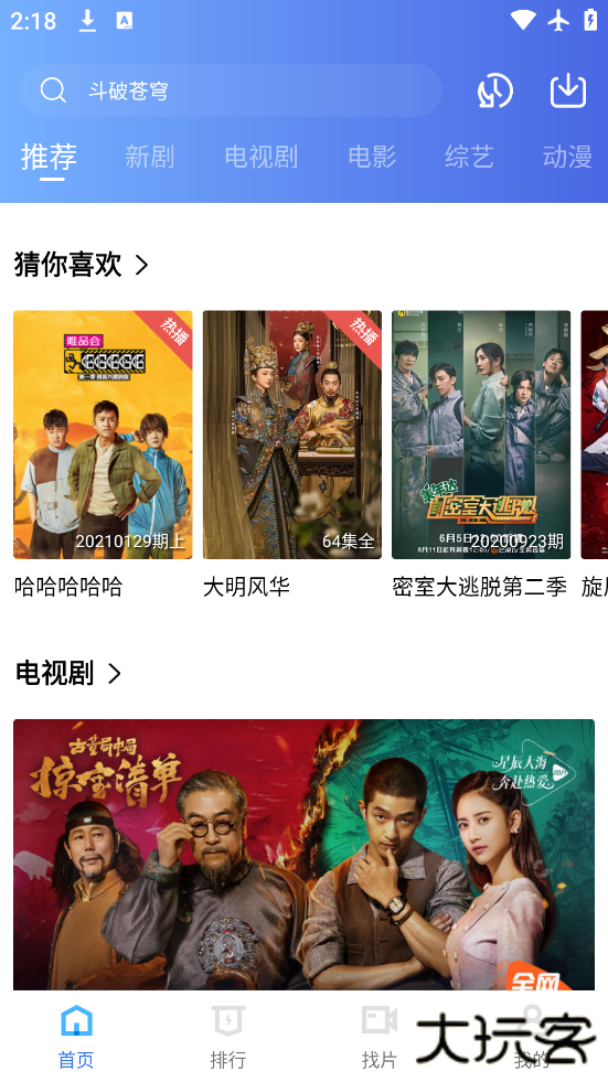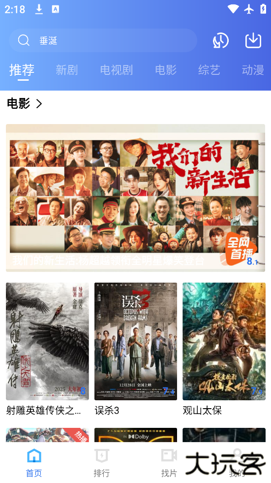 3、界面简单,主界面上最新的影视推荐,让你轻松找到新剧和热播剧,不需要任何广告。