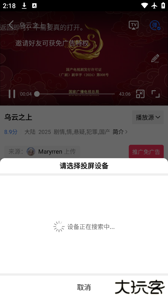 2、点击任意剧集,选择右上角的电视投屏按钮。