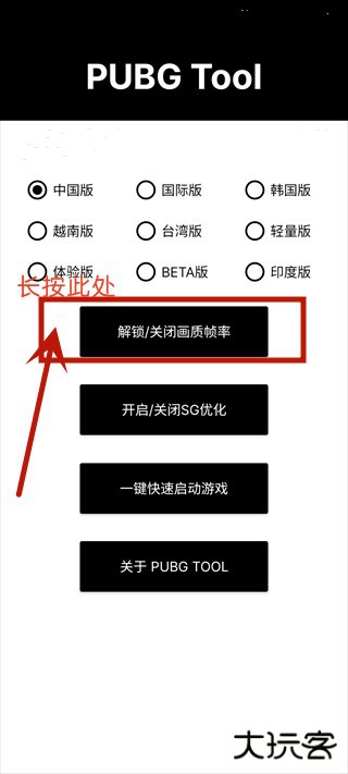 2、选择相对应的版本,点击主界面的“解锁画质帧率”